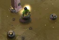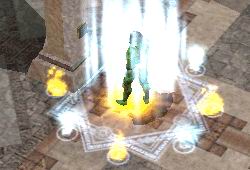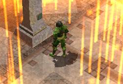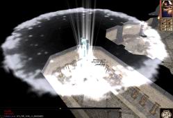 VFX_FNF_SUMMON_GATE | Three large stone pillars rise from the floor and a bright beam of fire comes down from above. Location: Area Color(s): fire, yellow |  |